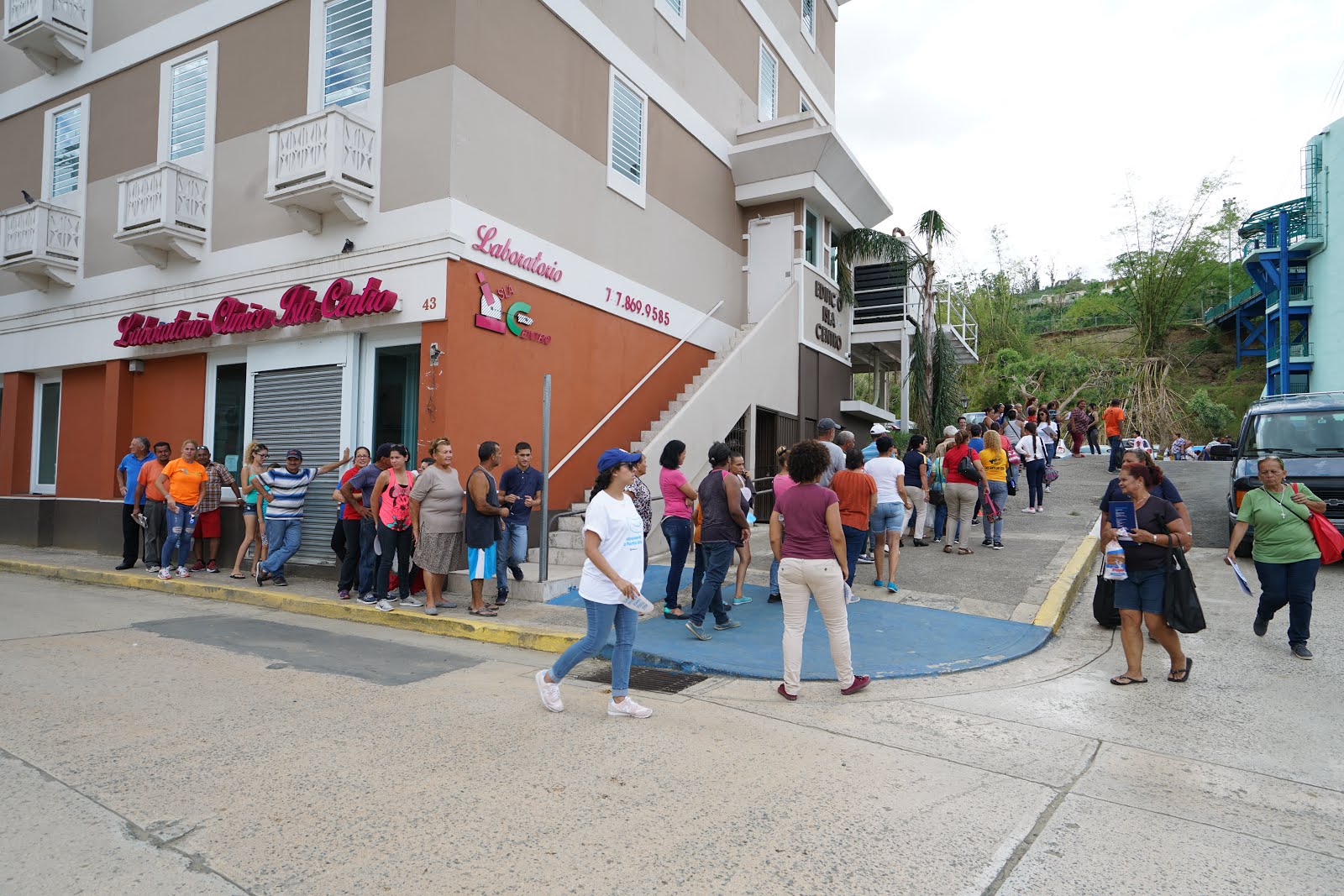 Right around the corner a huge line formed for bags of food and supplies. Lots of volunteers assisted in ensuring everyone was taken care of.